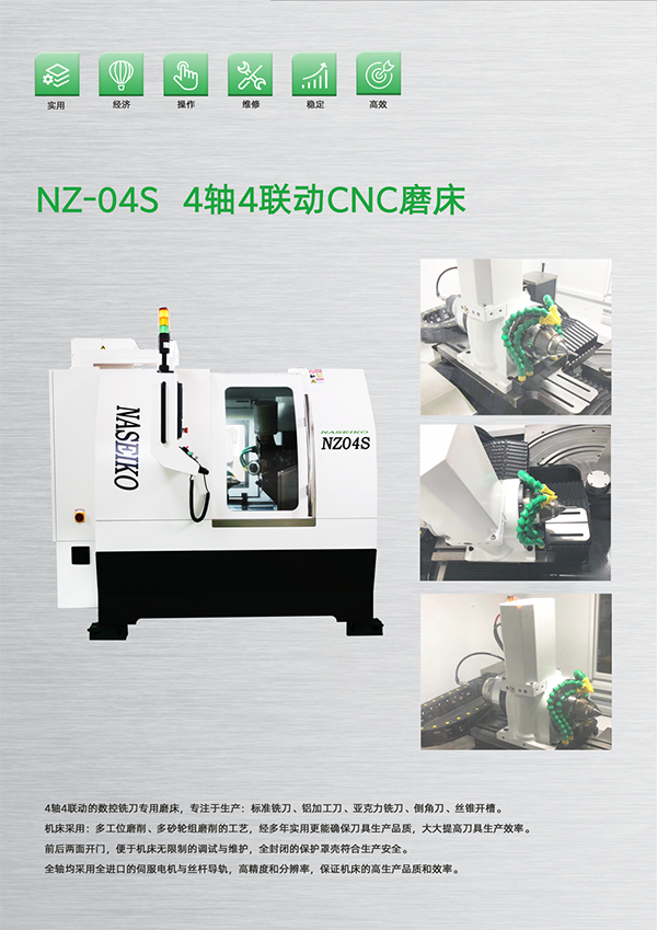 4軸4聯(lián)動(dòng)的數(shù)控銑刀專(zhuān)用磨床,專(zhuān)注于生產(chǎn):標(biāo)準(zhǔn)銑刀、鋁加工刀、亞克力銑刀、倒角刀、絲錐開(kāi)槽。